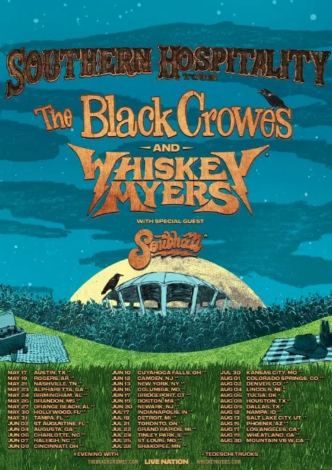 The Black Crowes are flying once again. The band announced its 2026 "Southern Hospitality Tour" yesterday, with guests Whiskey Myers and Southall. The tour kicks off May 17 in Austin, Texas, with stop...