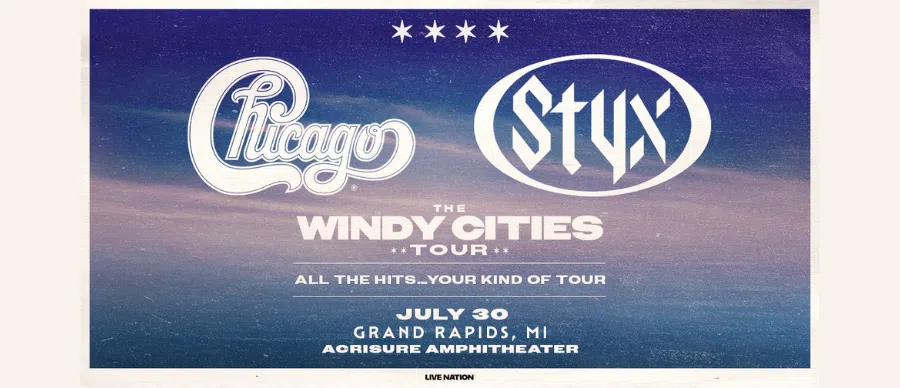 CHICAGO AND STYX 'THE WINDY CITIES TOUR - ALL THE HITS...YOUR KIND OF TOUR' ACRISURE AMPHITHEATRE JULY 30 Onsale: now HERE